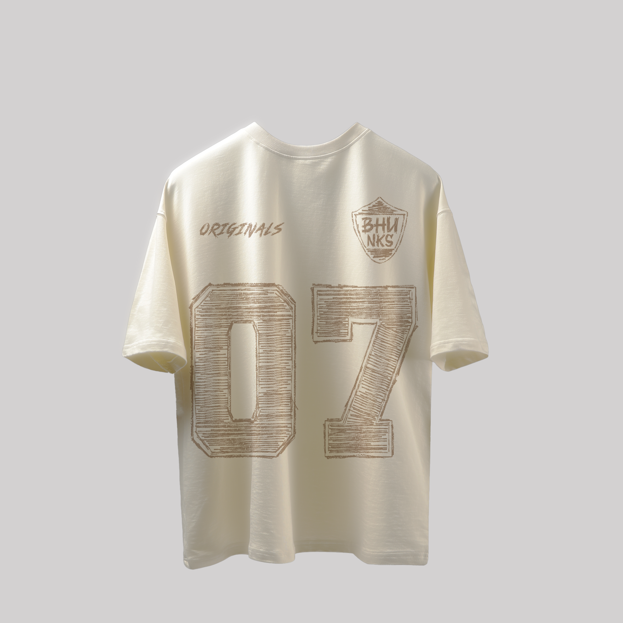 Make a statement with the BHUNKS Varsity T-Shirt, featuring the bold 07 I Am Not Down print. Crafted from premium cotton, this oversized varsity tee blends comfort with street-ready style.