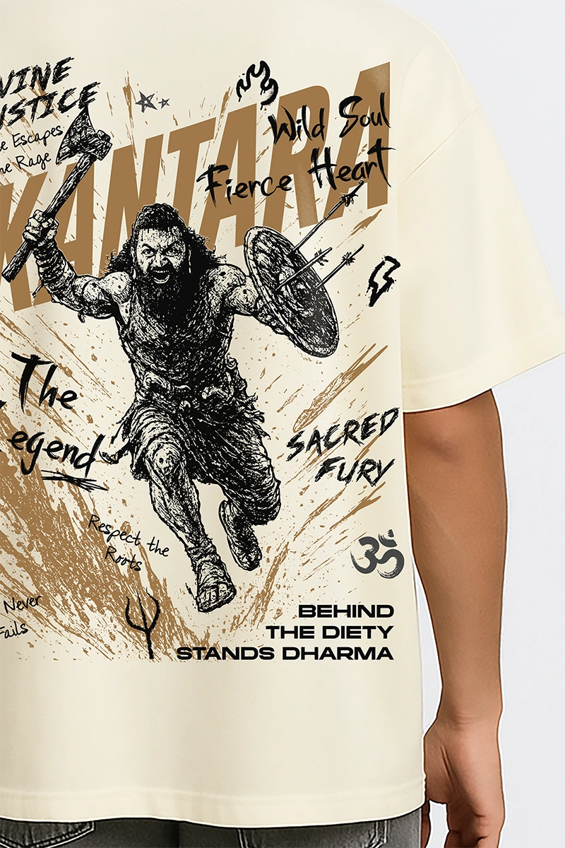Forged in faith, carved by destiny. This oversized tee strikes with divine symbolism inspired by Kantara: The Legend—a fierce streetwear statement for those who walk with purpose, embrace tradition, and carry the spirit of justice in every step.