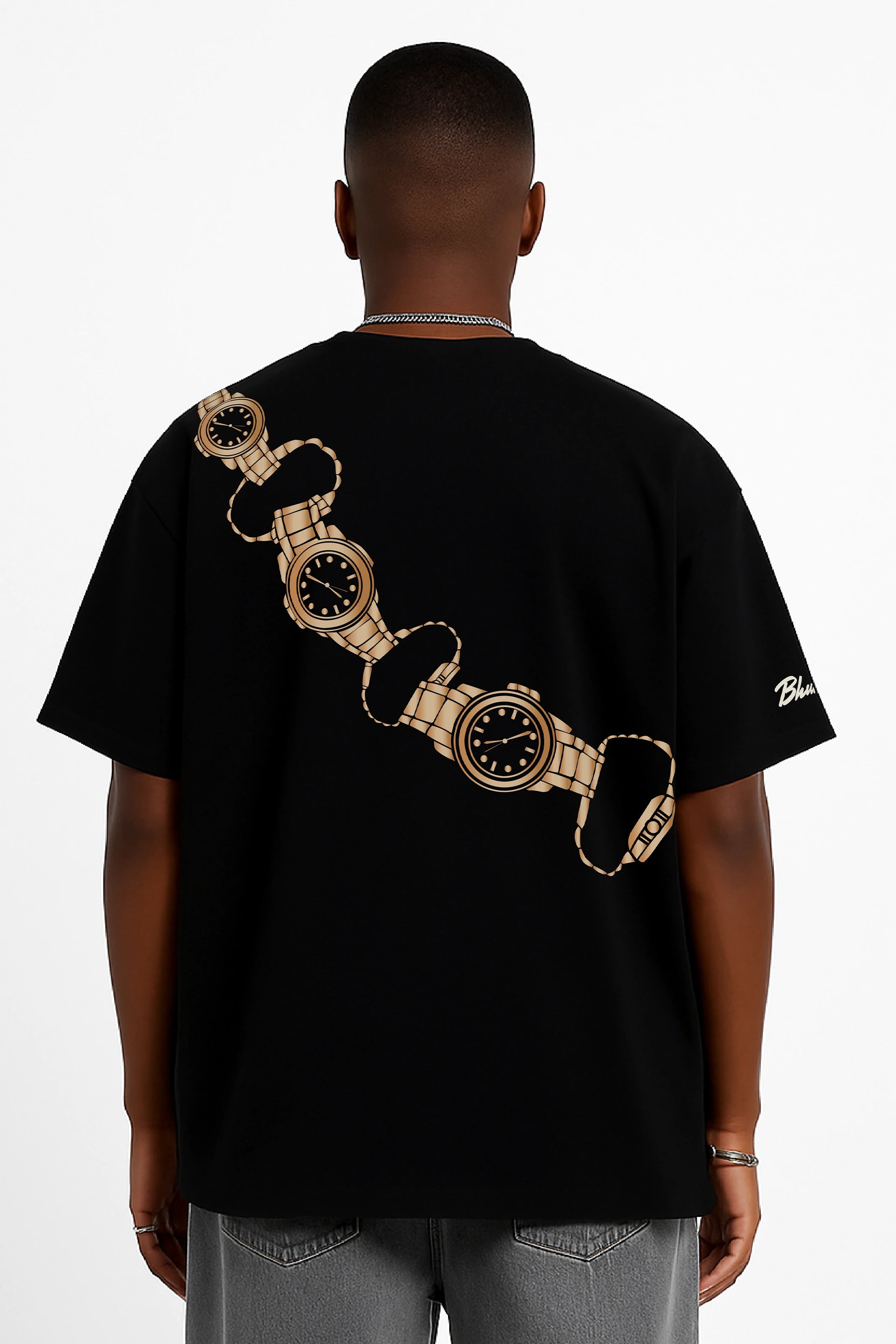 The BHUNKS Gold Watch Oversized T-Shirt is a silent flex — a tribute to timeless class without the need for loudness. Inspired by the elegance of a classic gold timepiece, this design speaks of legacy, discipline, and quiet success. Printed with precision on premium cotton, it’s made for those who value moments, not just minutes. Wear it like you wear your story — with purpose, pride, and presence.