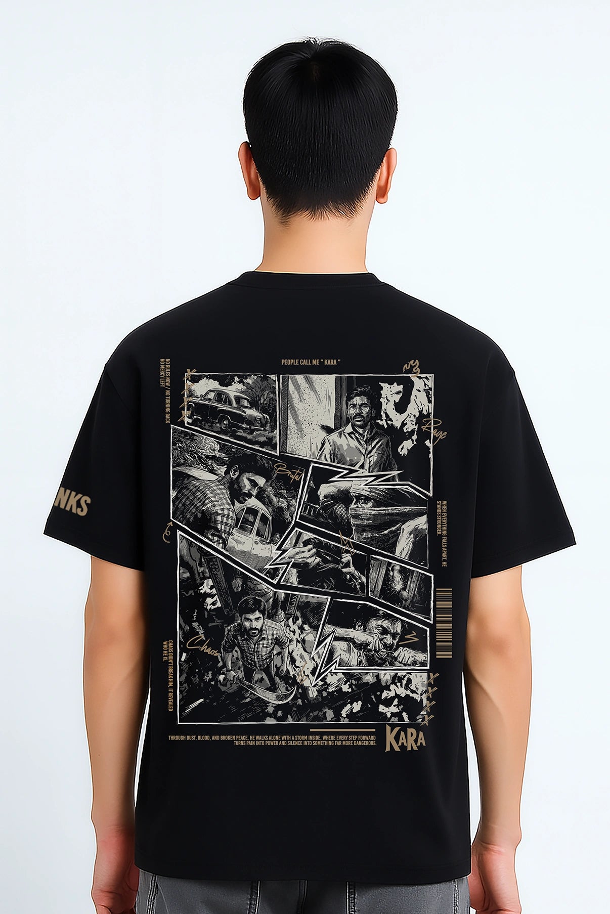 Raw, graphic, rebellious energy packed into every thread. This regular fit tee transforms Kara into a striking comic statement — made for those who live loud, think bold, and turn every moment into a powerful scene.
