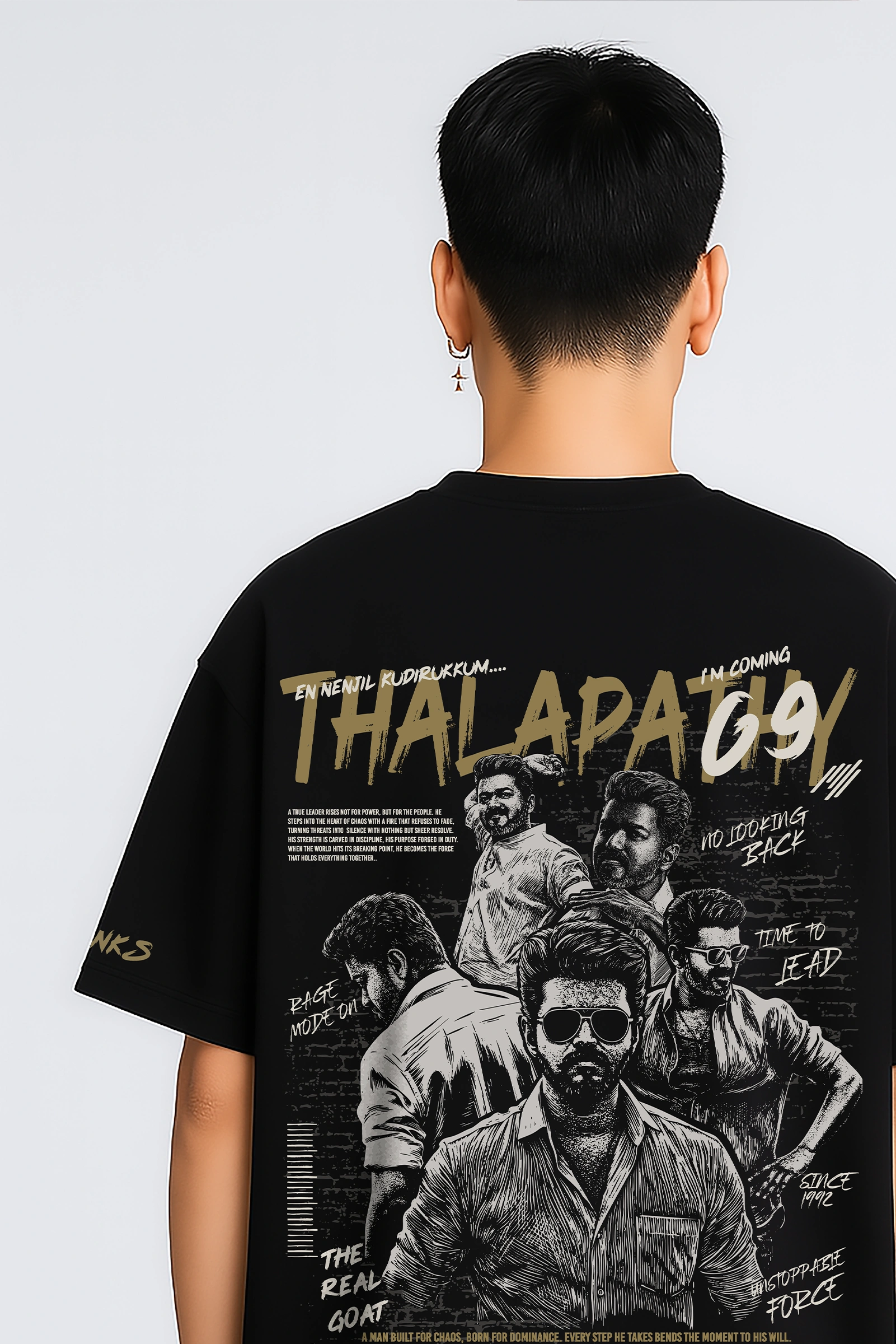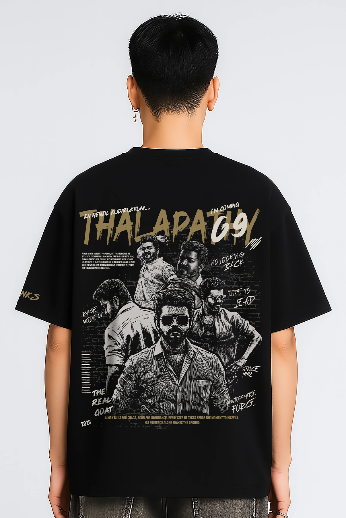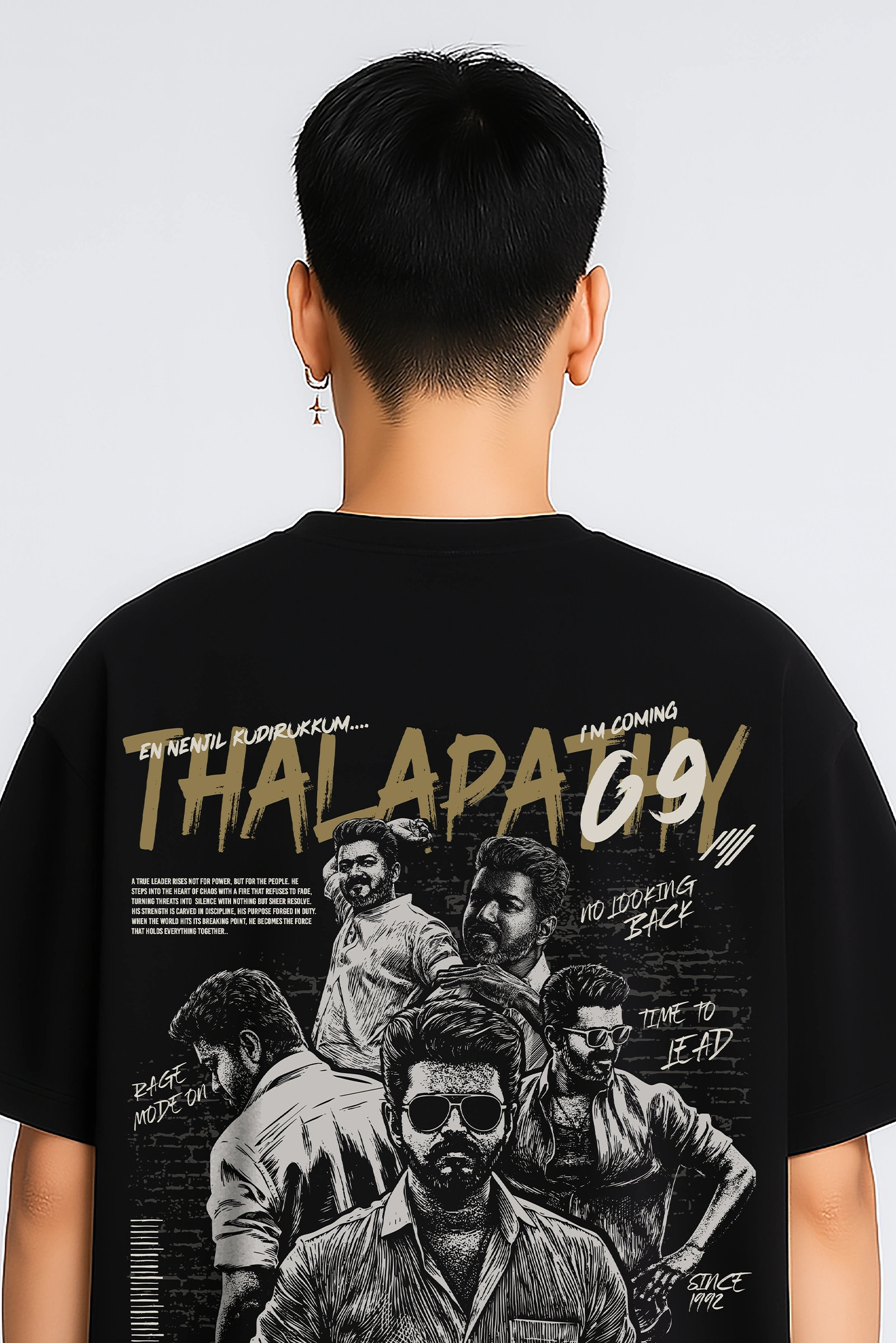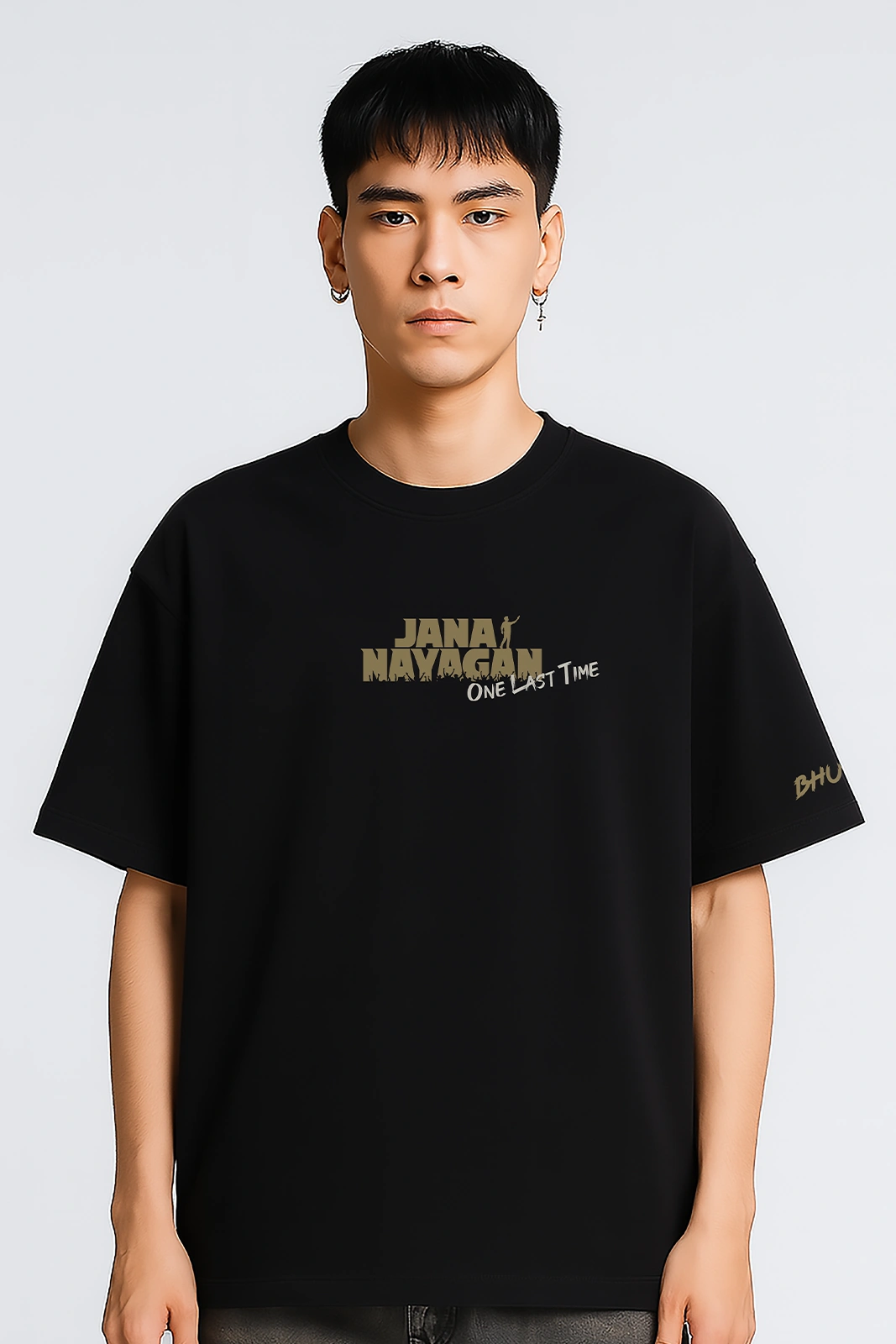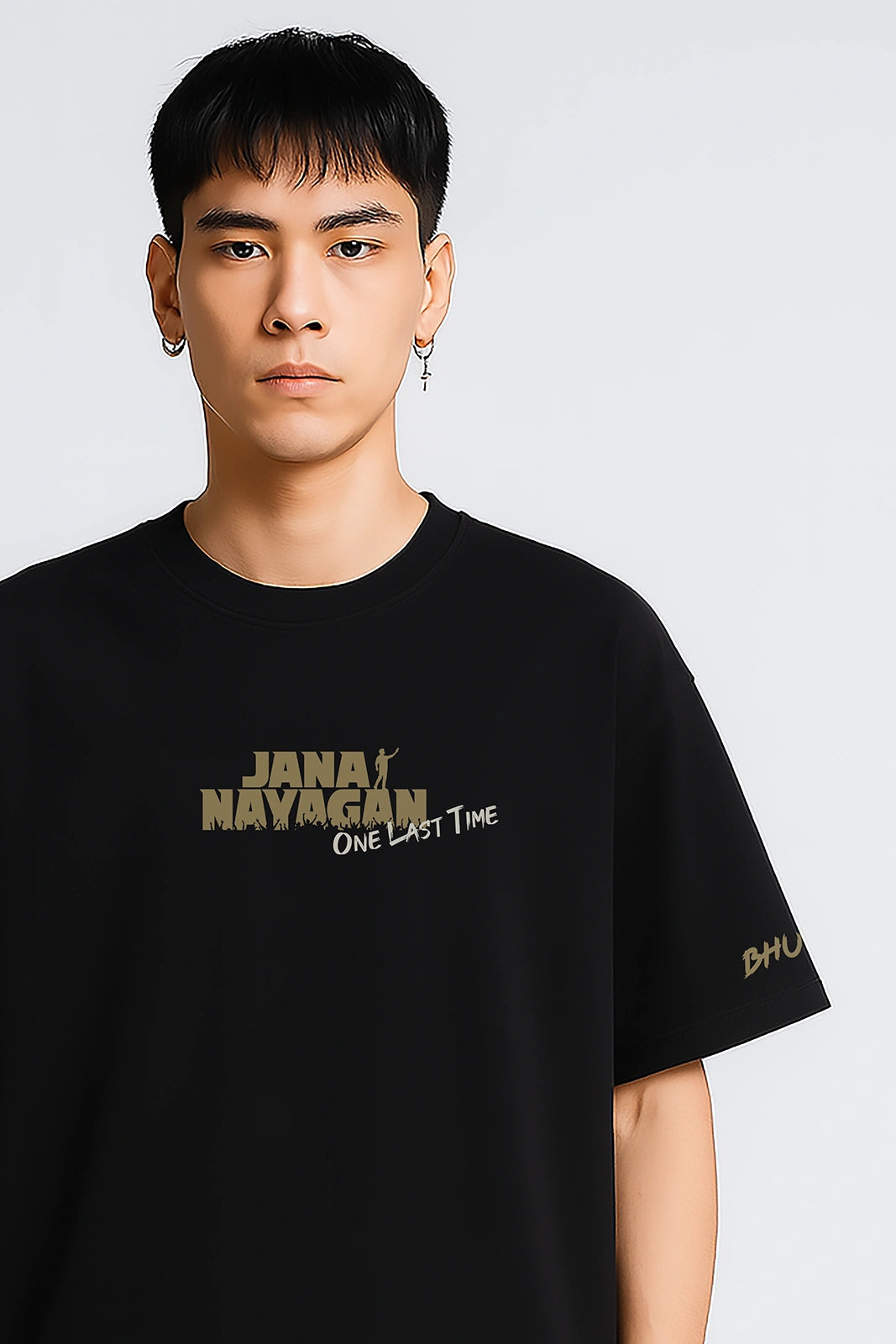 Fearless, relentless, unforgettable.This oversized tee captures the commanding presence of Thalapathy Vijay in Jana Nayagan — for those who leave their mark with every step.