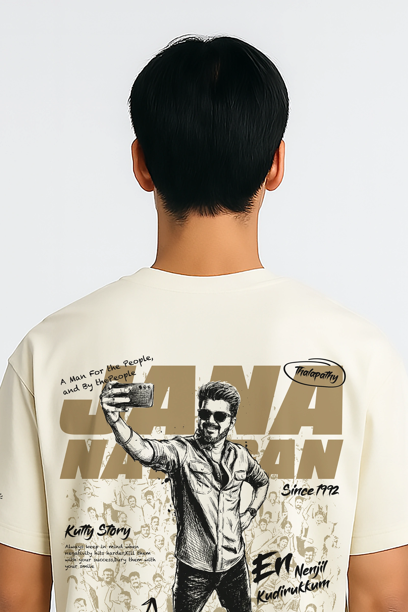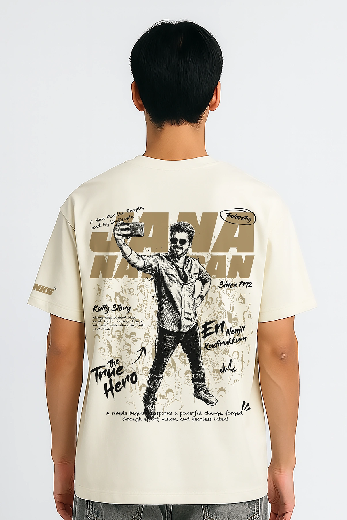 Bold, heroic, ready-to-lead. This regular-fit tee captures the presence of Thalapathy Vijay in Jana Nayagan — for those who make every move matter.